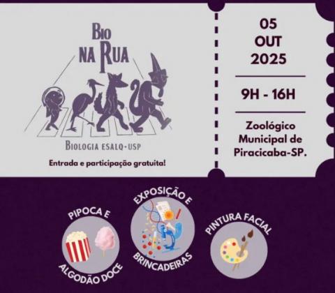 O Centro Acadêmico de Ciências Biológicas (CACB) da Esalq/USP promove, no próximo domingo (5/10), das 9h às 16h, mais uma edição do Bio na Rua, no Zoológico Municipal de Piracicaba.