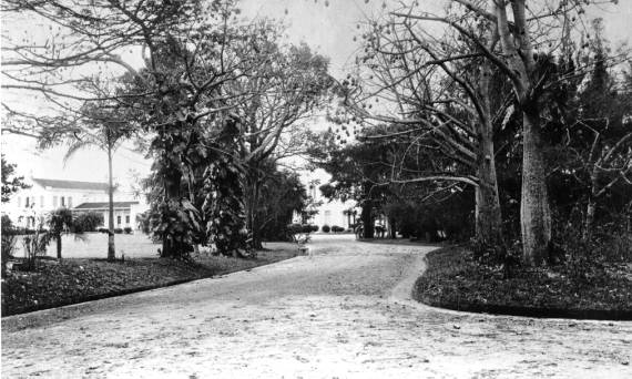 | Figura 3. Fotografia do Parque da ESALQ, tirada na década de 50, ilustrando uma alameda desprovida de pavimento. |